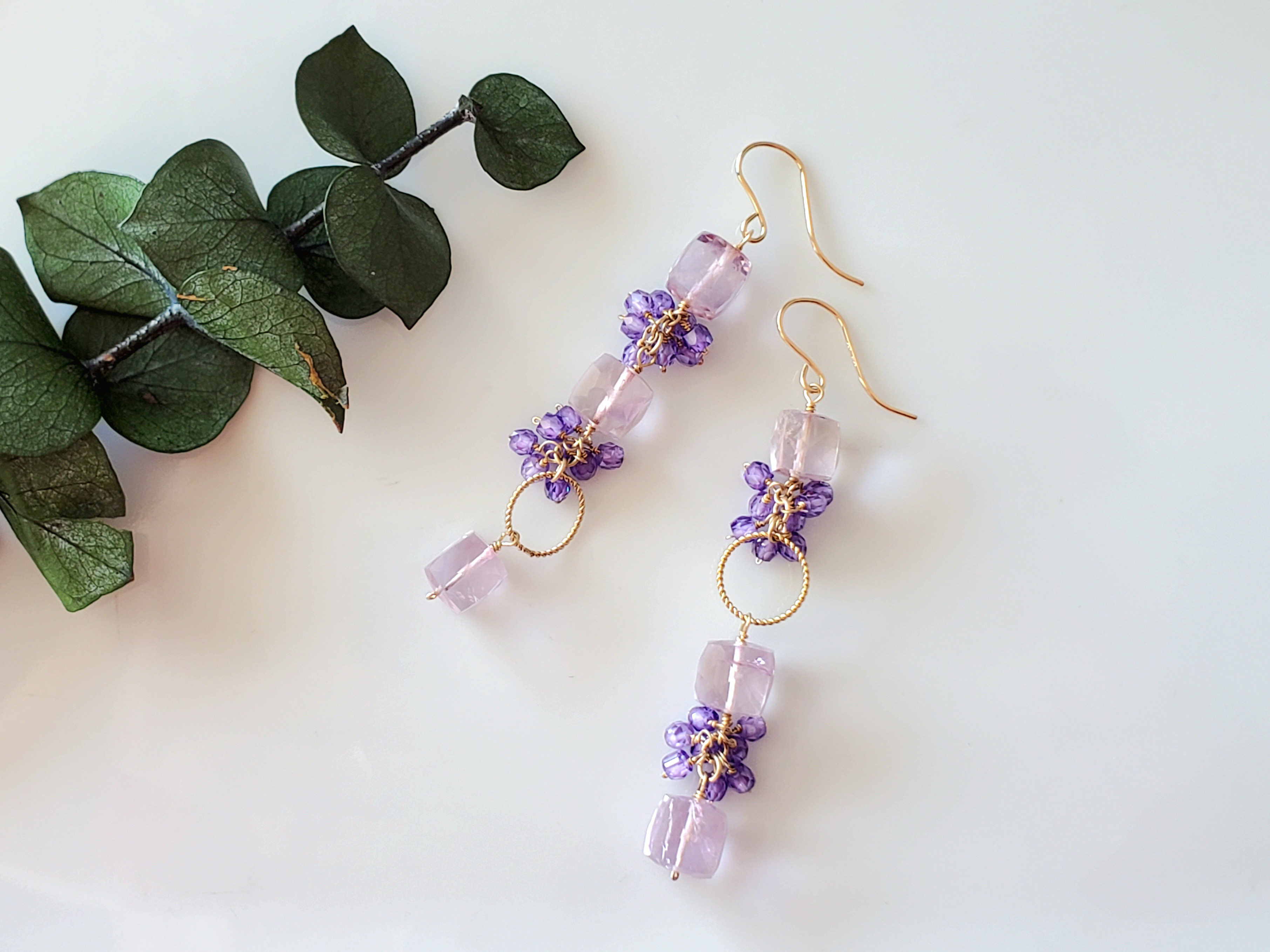 キューブ型のピンクアメジストに ラベンダーカラージルコンを添えて ロングピアスにお仕立てしました。 透明感あふれるピンクアメジストが ゆらゆら揺れるたびに煌めきを放ち お顔周りに華やかさを添えてくれます。 ジーンズに白シャツなどの シンプルシックなスタイルにさらっと着けて。 冬はタートルネックセーターの 時などのまとめ髪に。 カジュアルにも、お出掛けにも。 幅広いスタイルにお使いいただけます。 《 素材 》 ピンクアメジスト ラベンダーカラージルコン 金具は全てK14gf 《 サイズ 》 全長 約6.3cm(ピアスフックを含む) 《 特徴その他》 ☆ピアスの場合はシリコンキャッチが付属します。 ☆ミニフープイヤリング・ネジバネ式イヤリング・ノンホールピアスへの変更が可能です。 変更をご希望の場合はオプションよりお選びください。 ☆ゴールドフィルド(Gold Filled)とは、金を芯となる真鍮にコーティングした素材です。 通常の金メッキよりも金の層が厚いので、表面の金が剥げてくる心配はほとんど無く、手軽に本物の金の輝きを楽しむことができます。 ☆ご使用の状況により変色することがございますので、使用後は柔らかい布で汚れを拭き取るなどのお手入れをおすすめします。 |